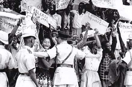 "As far as can be ascertained, the amount of skin lost by both police and demonstrators as a result of injuries received on this occasion would hardly cover the area of one square inch, probably no more than the area of a penny postage stamp; and it does not appear that the amount of blood that was shed would be sufficient to test the capacity of a mustard spoon".