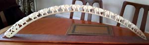 African Elephant Ivory How many of you possess one of these? This magnificant example of carving purchased in Nyasaland is the property of Peter Hewitt and given the background of dining-room chairs we can see just how big this tusk is. Such carvings were popular purchases by expatriates particularly in the 1950/60s and grace many a room back home. No one seemed aware at the time that it also cost the life of such a fine animal and African ivory now is very much a banned commoditiy - albeit now involving an illegal but lucrative trade with mainly countries in the far-east. So, what do you intend doing with yours?