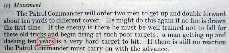 |  KW in his memories above suggested that "we all make mistakes" - the Printer in Zomba (and his proof reader) confirms this. The extract (above right) is taken from the PMF pamphlet 'Tactical Training' printed and published by the Government Printer, Zomba, in 1969. Surely a man running for ten years would be a relatively easy target given that even after two years, say, super fit though he may be, fatigue would have set in to render him pretty well immobile!