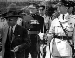 It's the PMF on parade and immaculate for HM the Queen Mother. Taking the parade was Jeff York and no doubt he was very proud to do so. Behind him, presumably, is the Commissioner, Charles Apthorp, and is it the Governor Sir Robert Armitage?