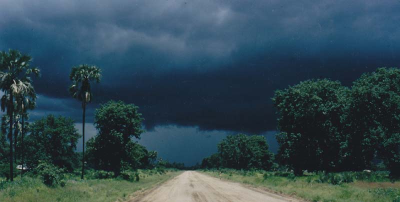 It can rain in the UK but do you remember the tropical downpours in Nyasaland and the accompanying electrical storms - this road (to Fort Johnston) is about to become a river!
