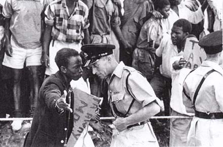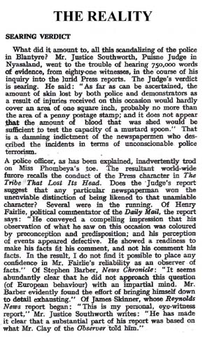 "As far as can be ascertained, the amount of skin lost by both police and demonstrators as a result of injuries received on this occasion would hardly cover the area of one square inch, probably no more than the area of a penny postage stamp; and it does not appear that the amount of blood that was shed would be sufficient to test the capacity of a mustard spoon".